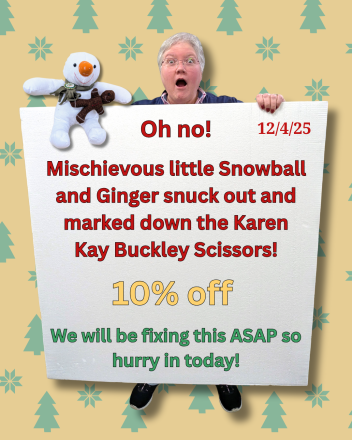 Special Announcement! Meet Snowball & Ginger! This lively and mischevious pair have trouble planned for Sew Fabulous during the month of December. Each night they will be surreptitiously marking different items down with various discounts. Each sale will only last for a day so be sure to come in right away! Each morning we will announce on Facebook and Instragram what Snowball and Ginger did overnight!
