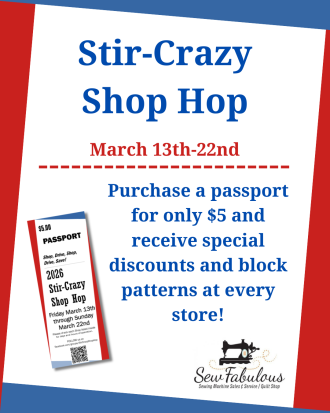 We need your help! We want to hear from you about your experiences here at Sew Fabulous and hear more about how we can serve you better. We are also always looking to expand what we carry and would like to hear from our customers to know what you would like! As a thank you for taking time to offer us your feedback, you will have the opportunity to enter a drawing for a $20 Sew Fabulous Gift Certificate! (Survey responses will remain anonymous, raffle entry is collected in a separate form) You can complete the survey here!